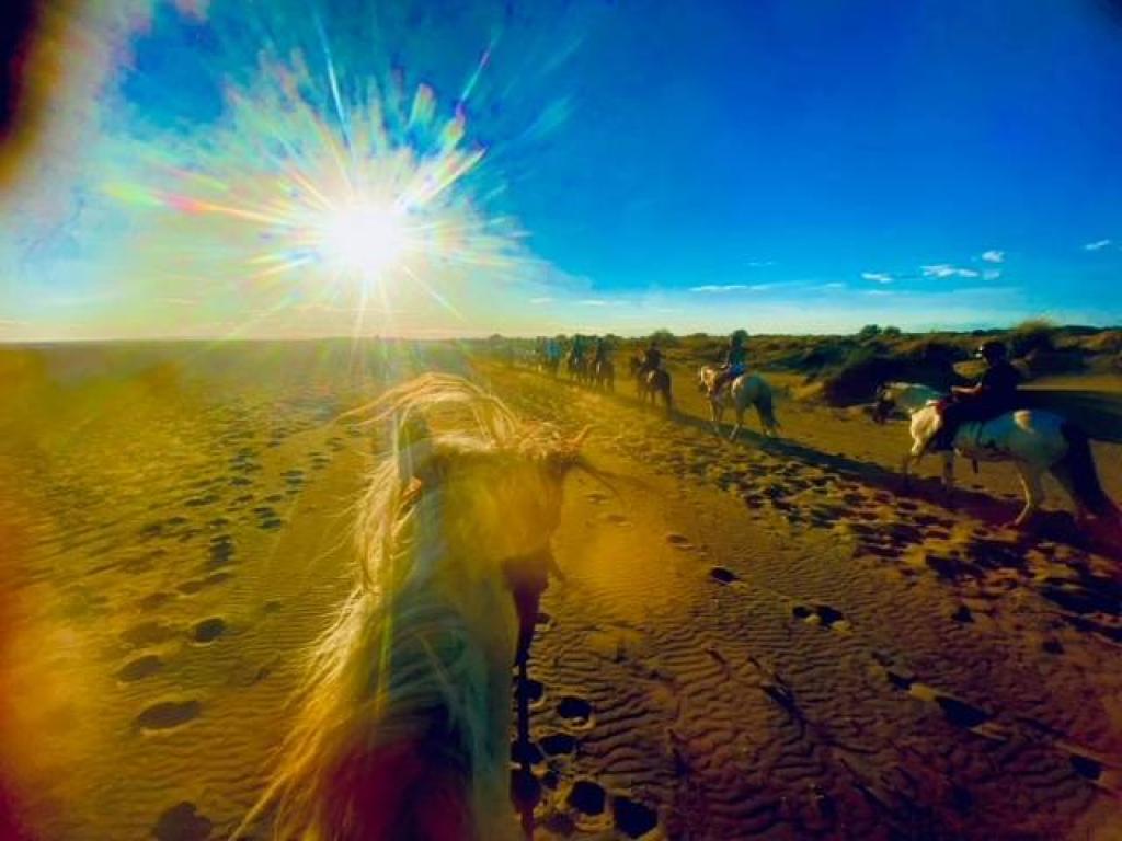 Imaginez-vous sur votre cheval sur le sable doré, tandis que le soleil se couche lentement à l'horizon.